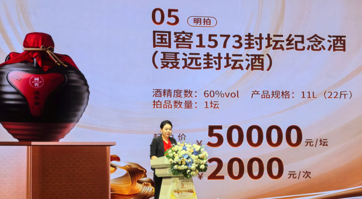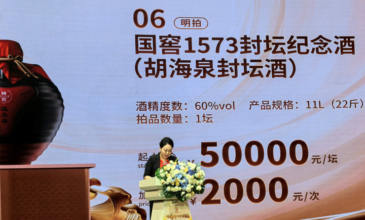 当天下午,在“生命中的那坛酒”活动中,一场泸州老窖·国窖1573的竞卖会也激烈上演。
